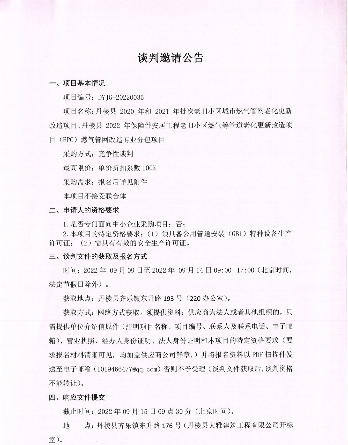 2020年和2021年批次老舊小區(qū)城市燃?xì)夤芫W(wǎng)老化造專(zhuān)業(yè)分包更新改造項(xiàng)目、2022年保障性安居工程老舊小區(qū)燃?xì)夤艿览匣赂脑祉?xiàng)目(EPC)燃?xì)夤芫W(wǎng)改造專(zhuān)業(yè)分包項(xiàng)目談判邀請(qǐng)公告