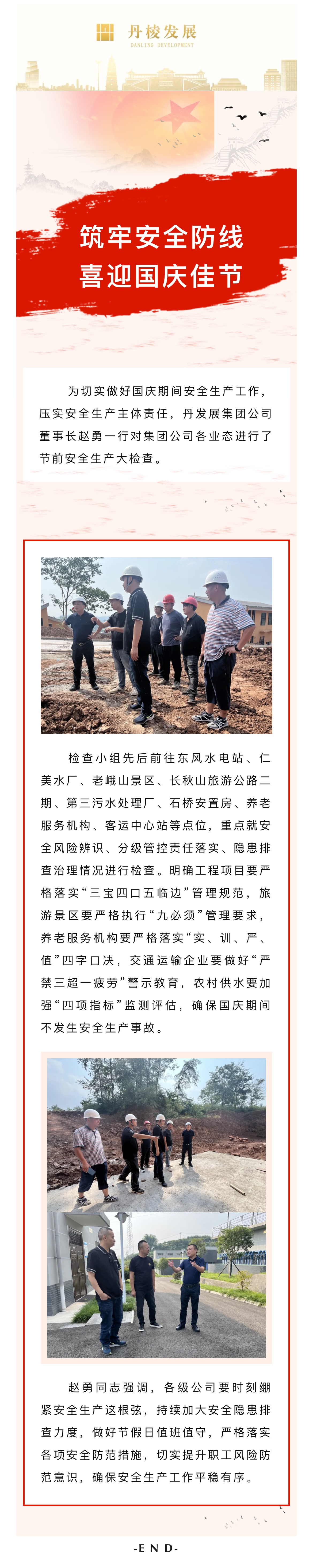筑牢安全防線,喜迎國慶佳節(jié)丨丹發(fā)展集團公司開展國慶節(jié)前安全生產檢查