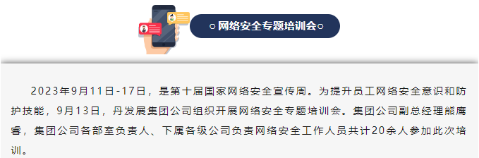 【網(wǎng)絡(luò)安全宣傳周】 丹發(fā)展集團公司開展網(wǎng)絡(luò)安全專題培訓(xùn)會
